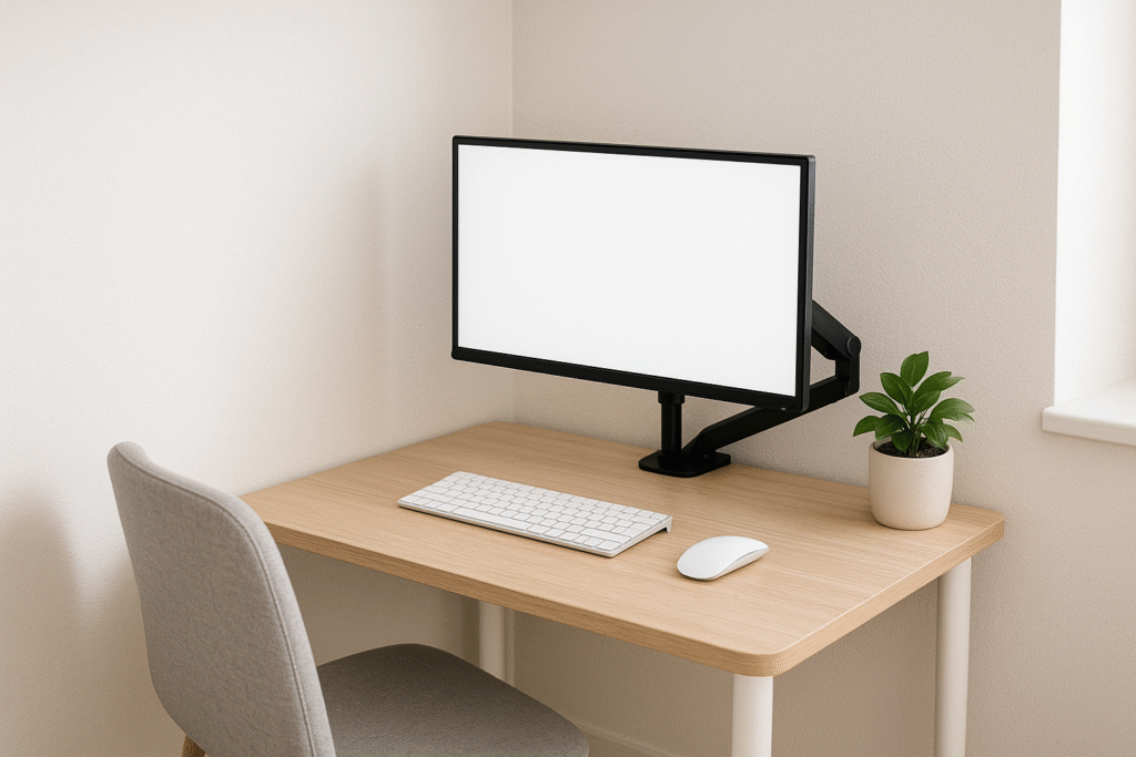 A monitor arm is one of the biggest space wins you can buy for a tiny desk.