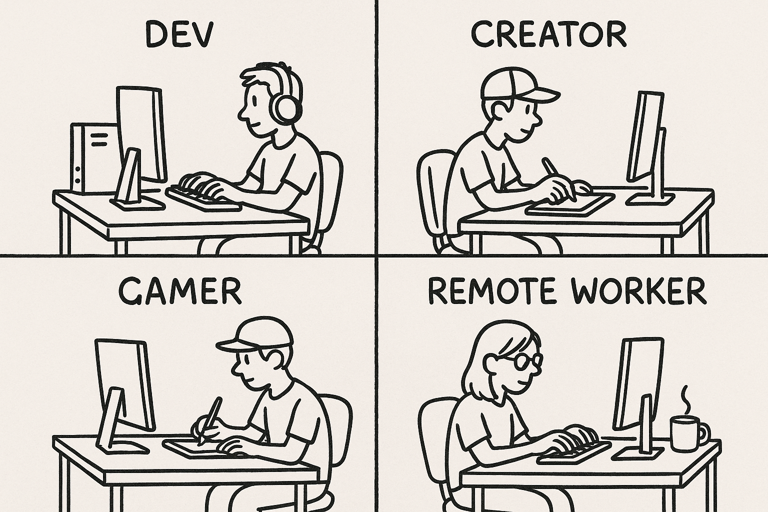 - Layout ideas for developers, gamers, creators, and remote workers